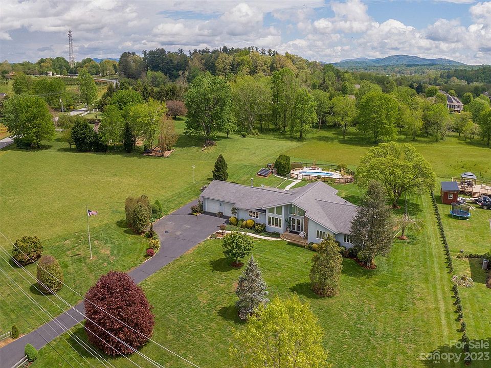 Convenient Location in Mills River. Originally custom built on 5 acres. Level 4 lots with pastural and distant mountain views. Open Floorplan, vaulted ceilings in Great Room, 3 bedrooms on main, including primary. Features Oak Flooring, screen porch, Vermont Enamel Woodstove, upgraded windows, new HVAC as of August 2022, Solar Heated inground pool, and partially finished lower level for den, office, exercise or recreational area, plus storage with garage door access. Note: Just the edge of back tract in fringe flood area. Radon Mitigation System and sump pump installed. Light, bright, and move in ready.