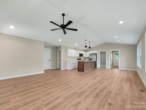 This super efficient three bedroom floor plan features a vaulted ceiling, laminate vinyl plank floors in main living area, carpet in bedrooms and lots of natural light from big windows. Farmhouse style home has everything you need with a open floor plan, great kitchen with huge island, white custom cabinetry, quartz counters and stainless appliances. The large primary suite boasts a walk in closet and generous bath. Exterior features a front covered porch and large covered rear porch for outdoor entertaining. Level back yard with plenty of space for a garden and play area. This great location is just 5 minutes from I-26 access, 10 minutes from the center of downtown, just a quick trip to grocery and restaurants. Barbara Stepp is a new road please use 121 N Mapleton Dr for GPS directions.