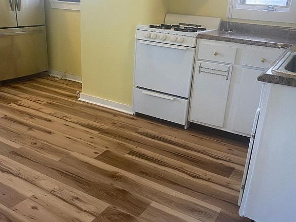 NEW VINYL PLANK KITCHEN FLOOR AND NEW CARPETING IN FIRST FLOOR BEDROOM AND LIVING ROOM.