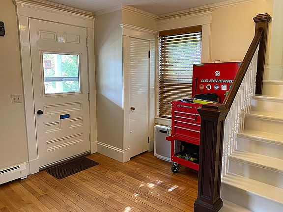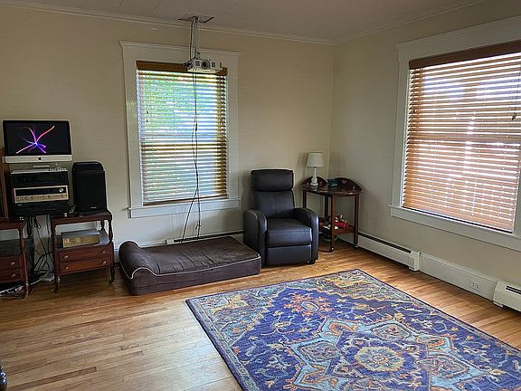 Views of Poet's Seat Tower to the east and the hills across town to the west makes for full sun and great sunsets. Very short walk to Beacon Field and all the trails along the Connecticut River. Less than a mile walk on quiet back roads to get to Main Street by the YMCA, post office, new library location, and new high speed commuter train. Dry, solid foundation (exceptional compared to many older homes in downtown Greenfield thanks to being on a hilltop), beautiful hardwood floors, high ceilings, a well maintained slate roof and heavy gauge aluminum siding. Very affordable and efficient on-demand hot water heating system on town gas. A great home for allergy/asthmatics. A big yard full of edible perennials like high quality concord grapes, chestnut, apple, and cherry trees. Great soil for gardening. Comfortable, convenient living. There are two full bathrooms on the second floor, one is newly remodeled and the other awaits the wishes of a new owner. More pictures coming soon.