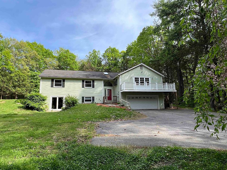 This contemporary raised ranch sits on a private 2.27 acre lot on a cul-de-sac in sought after Danville, NH. Front entry leads to the vaulted ceiling family room with wood burning fireplace and 2 brand new sliders leading to the private back deck. There is a mini split for A/C and heat and an updated kitchen with newer cabinets, granite countertops and stainless steel appliances. It is a large kitchen with an eating area and egress to the front porch. Down the hall there is a full bath with laundry and 3 bedrooms with the primary having a full bath and a slider leading to it's own deck. AMAZING lower level with great finished space for whatever you choose to do. There is new slider leading out to the front yard and an egress to the garage and utility room with sauna. Buyers fell in love with the privacy of the yard. They installed an electric dog fence so their pups can roam free. It's a wonderful place to relax and will only get better as the leaves appear on the trees and the grass greens up! Updates include interior lighting, windows, doors, decks and guest bathroom. Showings begin on Friday 3/29. Quick Close is Possible!
