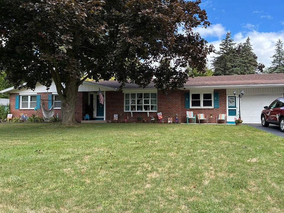 Welcome home to this beautifully maintained ranch that blends comfort, style, and thoughtful updates inside and out! From the moment you arrive, you’ll appreciate the curb appeal with low-maintenance vinyl siding, a wide double driveway, and an attached garage complete with a handy workbench and storage cabinets. Step inside and be greeted by a warm, inviting layout featuring three bedrooms and one and a half baths. The overside primary bedroom offers double closets for extra storage, while the freshly remodeled kitchen (2013) is designed for both convenience and style with pull-out pantry doors, modern cabinetry, and plenty of space for cooking and entertaining. A bright new slider leads you seamlessly from the dining area to the back deck, perfect for enjoying morning coffee or summer gatherings. You’ll also love the first-floor laundry and cozy electric fireplace that adds charm to the living space. Recent improvements ensure peace of mind and energy efficiency: new windows, central air (2022), a newer hot water tank (2021), and a full tear-off roof (2009). Head downstairs and discover a basement designed to keep things dry and functional, with two sump pumps, a French drain, and a complete waterproofing system. Whether you envision a workshop, storage, or additional living potential, this lower level delivers confidence and flexibility. Outside, the backyard is a true retreat! A shed provides extra storage, the playset stays for instant fun, and the vegetable garden is ready for your green thumb. The deck creates a great space to relax, entertain, and enjoy the outdoors. This ranch offers the perfect balance of move-in ready updates and features you’ll appreciate for years to come. Don’t miss the chance to make this well-cared-for home yours!