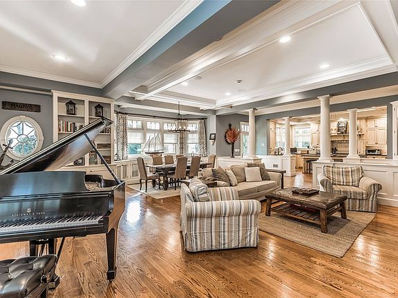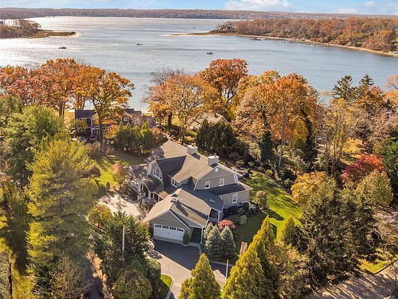 Stunning custom built Hampton's style colonial with wrap around porch, located in the sought after waterfront community of Asharoken with year round water views. This beautifully designed home offers 5/6 bedrooms and 5 full radiant heated baths. Quality craftsmanship and designer detailing is evident throughout, highlighted by 10 ft coffered ceilings, custom built ins and moldings. Enjoy the expansive, open, & sun filled floor plan perfect for today's lifestyle. The flexible floor plan also offers two possible primary bedroom suites on the first & second floors. Finished basement with gym, & game room. Privately set on a picturesque professionally landscaped 1 acre property. Deeded access to Asharoken beach lot is being offered with the home.