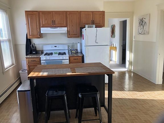 Sun filled and charming third floor apartment close to North Quincy Train Station. Spacious eat in kitchen with oak cabinets, gas stove and walk in pantry. Dining room with built in cabinets and great charm. Living room with decorative original fireplace and a large walk in closet and a storage room leading to front porch. Newly renovated bathroom. Private large rear deck.The entrance, hallways laundry and grounds area are always kept pristine. All new window throughout and low heating bills. Coin op laundry and three large shelves of storage space available for tenant use in basement. Great downtown North Quincy location close shops, Library, Wollaston Beach, public parking, bus, train and highway access. Tenants must have excellent credit and references.