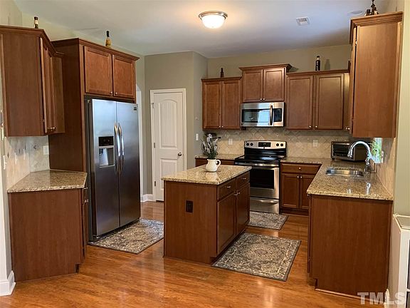 Beautifully landscaped home in quiet gated community close to Raleigh & Fort Bragg. Open floor plan perfect for entertaining & everyday living. Large Eat in Kitchen w/Granite & center island, Family Room w/Gas Log Fireplace. Office, Formal Dining, Spacious Master Suite w/Granite Countertop & two sinks, Walk-in closet. 3rd floor offers 600+ sq ft of additional storage.The backyard is a MUST SEE! Covered rear porch, shed, extra parking pad, fire pit & privacy fence. Community pool/clubhouse.
