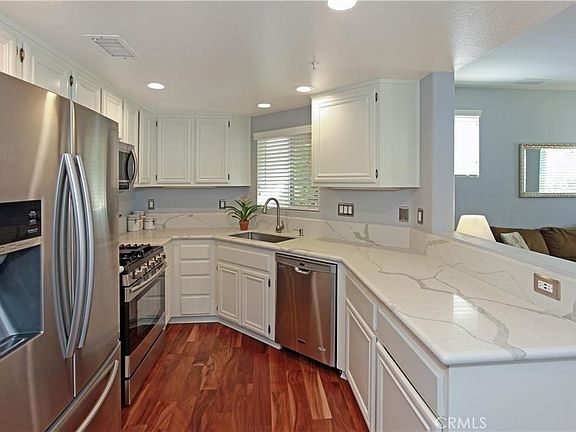 Welcome home to the beautiful neighborhood of Magnolia in Las Flores. Your ‘like new’ detached home is a charming 3 bedroom, 2 1/2 bath residence with over 1,200 sq. ft. of living space on a rare lot in a unique location within the community. As one of only a handful of homes within this highly coveted development, your new home has both a large wrap-a-round side & rear yard as well as an end location with no shared walls that looks out through trees & over roof tops towards Las Flores Elementary School, Tijeras Creek Golf Course, & stunning sunsets. Your recently updated kitchen includes recessed lighting, freshly painted white cabinetry, stunning quartz counter tops & backsplashes, a stainless steel farm sink, as well as a stainless steel stove, dishwasher & microwave. Additional refreshing updates to your new home include warm-toned engineered wood flooring on the main level, fresh paint in almost every living space of the home that strikes a perfect balance between warm & cool colors, along with the addition of ceiling fans in all three bedrooms. Storage is plentiful in your new home between the numerous closets & cabinets inside as well as the surplus ceiling racks & shelves in the garage. Custom landscaping accents to your new patio & freshly-sodded yard include solar lighting, flagstone pavers, & yard drains. Your new home is just minutes away from world class dining, entertainment, shopping, award-winning schools, parks, & the beaches of Orange County.