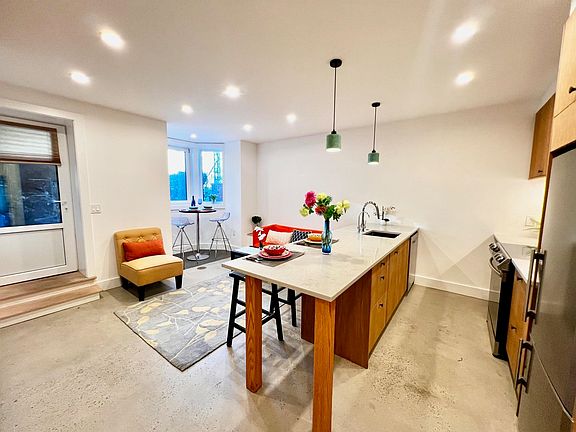 Welcome to this charming and completely renovated Passive House rental in the prime location of Jersey City Heights. Nestled on a tree-lined residential street, this 2-bed, 1-bath garden-level residence offers a perfect blend of modern convenience & vintage charm. Step inside and be greeted by high style and natural light that illuminates the sleek modern renovated kitchen with top-line stainless steel appliances, natural oak cabinets with hidden storage features, reverse osmosis filtered water, & an induction range, making it a chef's delight. Modern cement flooring, vintage solid wood doors and hardware add the perfect blend of character & warmth. Brand new Passive House (PHI) construction means thicker walls, added insulation, triple pane windows & doors, and better air sealing, making it the QUIETEST and most comfortable apartment you will find in Jersey City, yet only 20 minutes from NYC. The state of the art HVAC system also means better indoor air quality, as the central heating & cooling system also provides 24/7 filtered fresh air! Finishes like paint are zero-VOC for optimal human health. All of these sustainable design features make the apartment super cozy in all seasons, with ultra low electric bills. The private outdoor space offers a tranquil oasis & the convenient in-unit laundry also adds to the ease of living. Enjoy easy access to NYC and an array to eateries, shops and Pershing Field Park all nearby.