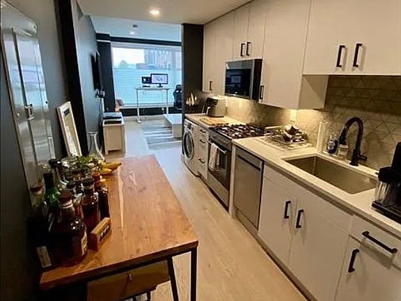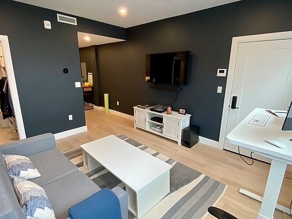 Fantastic location just across the street from the East Boston waterfront. This FULLY FURNISHED, thoughtfully laid out unit is only three years old, and lives much bigger than it appears. The kitchen is well equipped with marble counters, gas stove, microwave and combo washer/dryer. The bathroom has a tiled shower, glass shower door and high end fixtures. There is also a built in closet unit. The Murphy bed is the central feature in the living room. When closed, the living room is spacious and inviting. When open, the couch disappears and the room is transformed into the primary bedroom. Large windows supply plenty of natural light, and custom window treatments filter that light when needed. Heat and a/c controlled by an Ecobee smart thermostat. Located near popular shops and waterfront restaurants. Convenient to public transportation, bus routes and ferries to Charlestown and Seaport. So many features in an efficient, small, and luxurious package. Don't miss this one!
