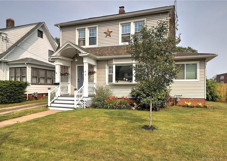 Say hello to your next home located one block to Main Street in the center of town. This classic 1920's Dutch style Colonial with lots of curb appeal and a welcoming front porch has so much to offer. The main level features a large living room with wood burning stove & bay window, dining room with french door to cozy den/office & slider to deck, nicely updated kitchen with granite counters & newer appliances and a large updated full bath. The second floor features primary bedroom with walk-in closet & second closet, two additional bedrooms and updated bath. Hardwood floors. High ceilings. Full storage basement with upgraded electric. Newer gutters. One car detached oversized garage. Large deck overlooking wonderful flat fenced in yard. This timeless beauty oozes with old world charm mixed coupled with a nice blend of some fantastic modern updates. It's so close to shopping, many popular restaurants and minutes to East Haven's quaint town green, beautiful town beach, Downtown New Haven, Yale, hospitals, Tweed-New Haven Airport and train station. Opportunity is knocking. Don't delay or you will miss out on such a lovely home!