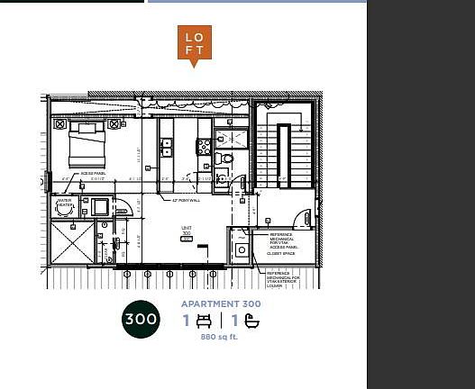 - Total interior livable area: 880 sqft