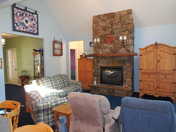 Beautiful home built in 2003 in one Northampton's finest neighborhoods, tucked off the road offering the privacy of a 2.61 acre lot. The stunning living room has a cathedral ceiling, circle top window, beautiful stone fireplace and French doors to a back deck. It opens to the kitchen featuring a large center island with cook top and sink. There is a formal dining room for larger gatherings. The large master has a cathedral ceiling, and private bath with large soaking tub, skylights, and walk-in closet. Conveniently located near the heated garage is a 1/2 bath and laundry area. The second floor bonus room is perfect for a home office, or could be used as a 4th bedroom. It also has access to attic storage space with expansion potential. There is partly finished living area in the basement with walk-out to the back, rough plumbing for future bath, and a free-standing gas stove/ heater.