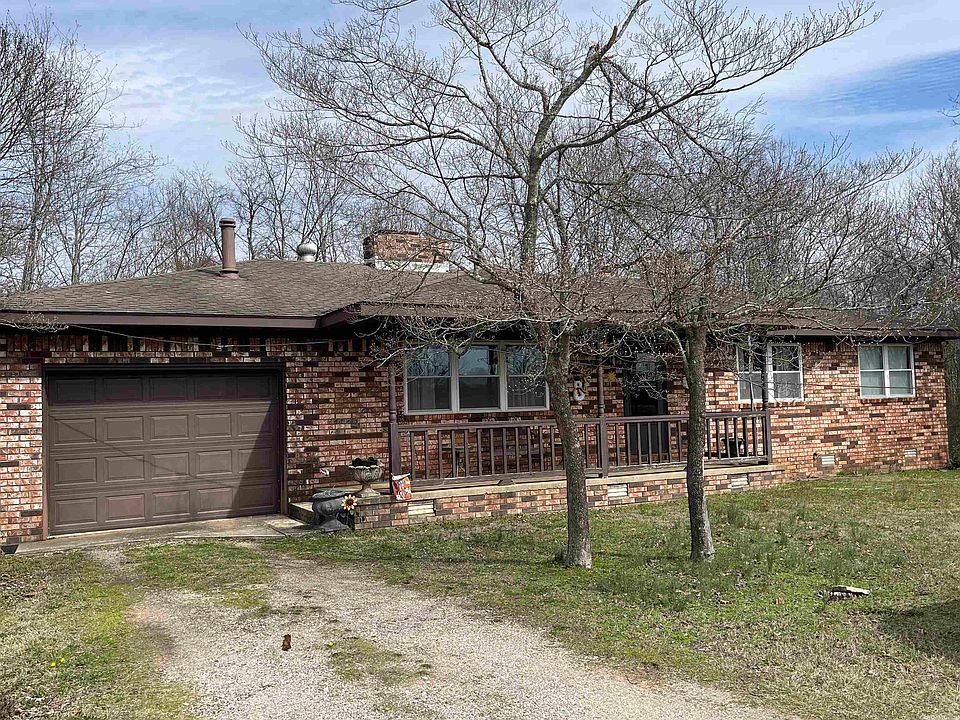 Private home at end of Gravel rd on 20 acres. This Brick ranch style home sets on the North east corner of approximately 20 acres with beautiful Dogwood trees greeting you at the front porch. The acreage is about 12 acres pasture and is currently used for lease to a few horses. Nice pond on the Southwest end of the 20 acres tucked up in the woods. House consists of 3 bedrooms and 2 baths with master bath having a walk in shower. approximately 1610 Sq ft of living space on 1 level. Gas log fireplace in Living room, spacious bedrooms and newer double pane Windows throughout. The back porch is screened in and back up to woods for a total private connection to nature. Home has mostly hardwood through out. spacious kitchen, with abundant cabinets and workspace. Nice sized pantry off the dining area. Portion of the utility at the end of the carport has been converted to house washer and dryer along with water heater and Freezer. There are several linen and storage closets throughout home and master bedroom has 2 closets as well. Perfect Hobby farm property. call or text to set up showing. 24 hour notice requested. Occupied. Fiber optic available not currently installed. Barn needs work.