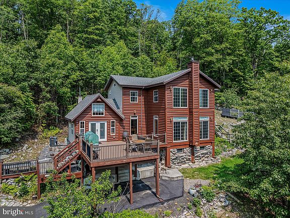 Contemporary log and vinyl design home tucked in the woods, not your average cabin. You will find this one beyond the ordinary. Own your own piece of Almost Heaven WV with this 3 BR 3BA plus a loft for a 4th bedroom home. Frontier fiber to the router offers up to 9 gig bandwidth for work or play. All furnishings and window treatments convey making this home live-in ready. Radiant floor heat on the 1st and 2nd floor are supported by an outdoor boiler as well as propane back up. Heat pump less than 3 years old. Harmon pellet stove on the main level. Brazilian cherry floors with ceramic floors at the entries, copper ceiling in the kitchen. Cedar closet in the primary bedroom suite. 5x5 tiled shower (plumb in ready for steam generator). Relax in your outdoor 4 person sauna. 500 sq. ft. trex maintenance free deck and At 1,600 ft. elevation you can sit on the deck and watch the humming birds in the mature fruit trees. Too cold this winter for outdoors? Just cozy up inside and watch movies on the 120" movie screen with projector. 12 panel solar array with battery backup allows for off the grid living if mother nature happens to take out power. There are two EV chargers, a paved driveway and a solar powered security gate make for easy access. Separate access road allows for wood and other supplies to be delivered to your door. A 12X20 tool shed with all tools and contents, as well as a 10x12 shed equipped with a snow blower, rototiller and various gardening tools remain. The UTV with plow blade, all landscaping tools and chainsaws for all your maintenance needs are also included. Seller selling fully furnished. No Drivebys Please. Cameras on the premises.