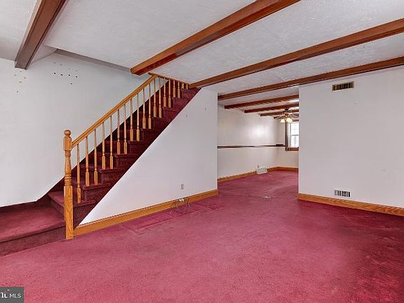 Welcome to 71 Chester Ave. Located on a quiet cul de sac street, this end of row is priced to sell! The 1st level features a large living room with a large front bay window along with extra side windows. The formal dining room has a chair rail, ceiling fan and wood beams to compliment the area. Both of these rooms have carpeting over the (presumed) hardwood floors. The eat in kitchen is lovely and has been updated with newer oak cabinets, granite counters, gas range, microwave and dishwasher. The kitchen table and chairs are included! The 2nd floor has the master bedroom with a large closet. There are 2 additional bedrooms. All bedrooms have ceiling fans and carpets. The updated hall bath has tile floor and walls along with oak cabinets, The extended basement is finished with drop ceiling and tile flooring. There's a convenient powder room. The laundry area and utility area are on this level. The 1 2 garage is perfect for additional storage. Outside there's additional parking along with a storage shed. The property backs up to a lovely playground! Conveniently located...you can walk to the trolley, bus and train. You're within minutes to all major roadways yet tucked back at the end of the cul de sac for privacy. The property is in good condition, however it is selling as is. Come take a look!