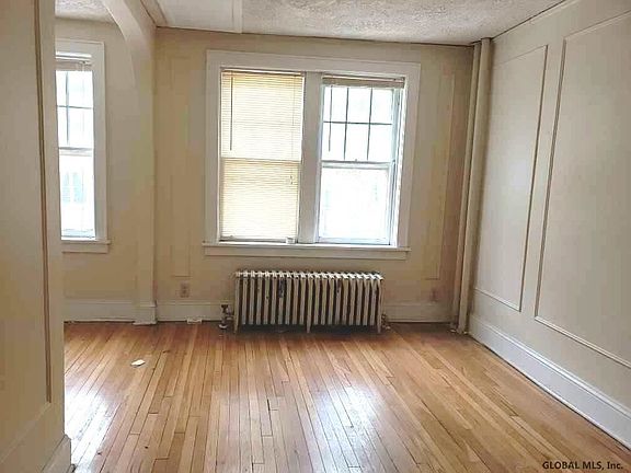 One-bedroom apartment located in traditional Center Square brick apartment building. One block from Empire State Plaza. Plenty of character with raised panel wainscoting in Living Room, cast iron radiators and tall ceilings. Hardwood Floors. Gas oven and Refrigerator included. Vinyl windows. Walk to the downtown Capitol area. Access to major bus lines. Parking space available for additional $100/month.