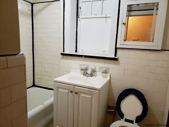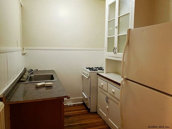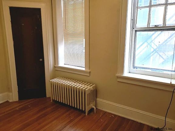 1-Bedroom apartment one block from Empire State Plaza. Located in traditional Center Square brick apartment building. Hardwood Floors. Freshly painted. Raised panel wainscoting in Living Room, tall ceilings, wide trim & tall baseboards. Charming Cast Iron radiators and vintage glass doorknobs. Ceramic Tile in Bathroom. Gas oven and Fridge included. Gas Heat. Separate meters. Walk to downtown Capitol area. Access to major bus lines. Parking space available for additional $100/month.