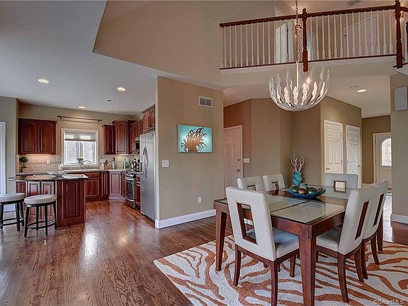 Stunning home located in a neighborhood setting of fine homes. Features include an open floor plan with soaring ceilings & a wonderful floor plan. The eat-in kitchen features cherry cabinets, tile backsplash & a granite island. The kitchen opens to the dining room & living room w/fireplace and loads of floor to ceiling windows that let in plenty of light. 1st floor Master suite boasts a large walk-in closet and full bath w/double sinks. The 2nd floor has 3 large bedrooms and a full bath. Enjoy the large deck overlooking the private backyard. First floor laundry room, central air, two car garage and walk-out basement. Almost 2 acres of land backs up to conservation land. Close to Rt 2 and shopping.