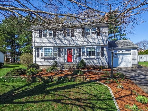 Exciting opportunity to own this beautifully maintained, meticulously landscaped four bedroom Scelza built colonial in a quaint New England Charm neighborhood. Family room with custom mantel designed by Nayaug & Co. leads to half bath (first floor laundry and fantastic 3 season porch (not included in sf. Large Living Room and Dining Room with Custom Crown Molding,Wainscoting and Hardwood flooring. Tiled eat in kitchen is bright and offers plenty of cabinet space. 4 generous sized bedrooms all with ample closet space and hardwood flooring under carpets. Master bedroom has new wall to wall carpet, freshly painted and two large his/her double closets. Heated lower level offers space for an additional family room, game room or playroom...endless possibilities. Additional features include-New Thermopane Windows (2007, Cedar Impressions Vinyl Siding (2010 New Garage Door(2010 New Roof/Gutters 2009 (Architectural 30/yr,New Oil Tank 2017, along with a newer pavered front walk with blue stone steps. Truly a fantastic home-lovingly cared for by the Original Owners.