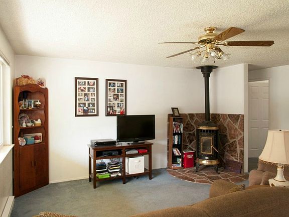 - Fireplace features: wood stove
