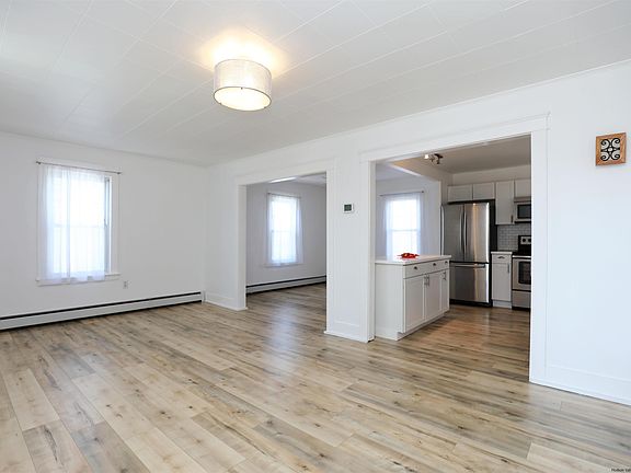 Centrally located, situated in a quiet neighborhood among well kept homes in the City of Kingston. Entering the main level from your covered front porch you'll find an immaculate open kitchen, living room and dining room. The entire first level has brand new vinyl flooring and spotless updated kitchen with stainless steel appliances. Vinyl, double hung replacement windows throughout. The upper level has three bright bedrooms and a full bathroom with tub. There is a full unfinished basement (great for storage) with washer and dryer. This lovely home is close to all amenities and sidewalk align both sides of the street. The backyard offers space for gardening and includes a storage shed at the end of the driveway.