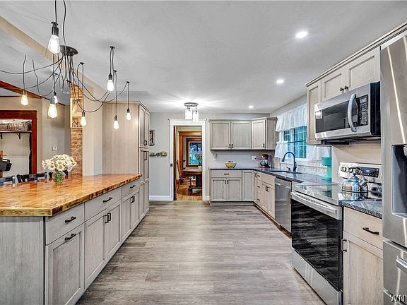 Discover this beautifully updated home in the Village of Arcade, benefiting from all Arcade electric and an amazing location.The interior boasts a stunning new kitchen that seamlessly opens into a spacious family room,complete with a butcher block breakfast bar,spacious cabinets,vinyl plank flooring and an exposed brick chimney accent. It's truly a dream kitchen!The downstairs offers a versatile layout with a ½ bath, a formal dining room, and two additional large rooms.Upstairs, you'll find generously sized bedrooms and a beautifully updated bathroom featuring more exposed brick.This unique home showcases natural woodwork throughout, central A/C on the first floor, and a huge attic perfect for storage or finishing.Outside, enjoy the low-maintenance exterior with vinyl siding, vinyl windows, and a stamped concrete patio and walkway.The large backyard includes a large deck, an oversized shed, and plenty of space for outdoor activities.Additionally, you’ll find a large two car pass through garage that is perfect for storage and entertaining as it opens into the back yard.Showings begin at the open house on Saturday 7/20 at 10a.m. Will begin reviewing offers on Wednesday 7/24 at noon.