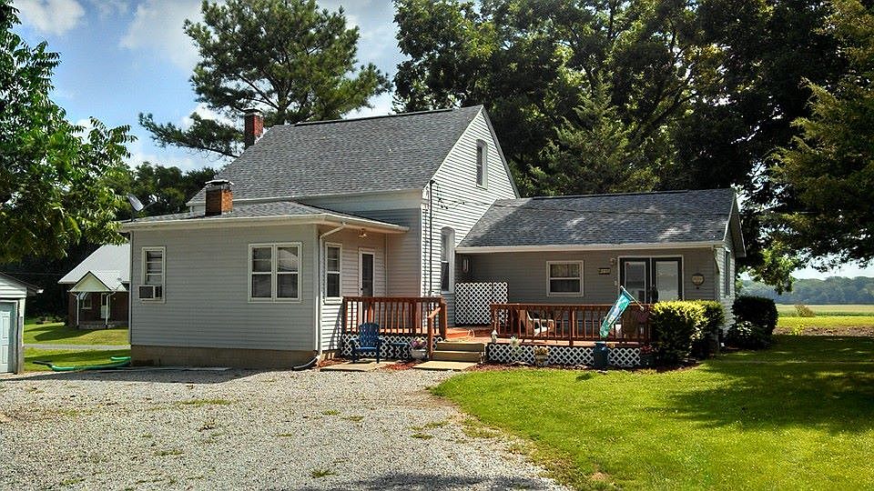 This historic 2 story home was built in the early 1900's; the house is mainly vinyl siding over brick with a new roof. The main level has a spacious family room with a gas fireplace, a large combination kitchen/dining area, a small bedroom, a bedroom with a gasfireplace, and one full bathroom. The kitchen has ample counter and cabinet space and the bathroom is plenty big featuring a large shower room. The upstairs level features a large bedroom with an open staircase. The basement of this house is finished with a small kitchen and laundry area, a living room and a bedroom. The house sits on four lots and as you can see there is a large wooden deck and there are two detached garages. The largest of of two is finished with cabinets, counters and a bathroom. Both garages have brand new roofs.