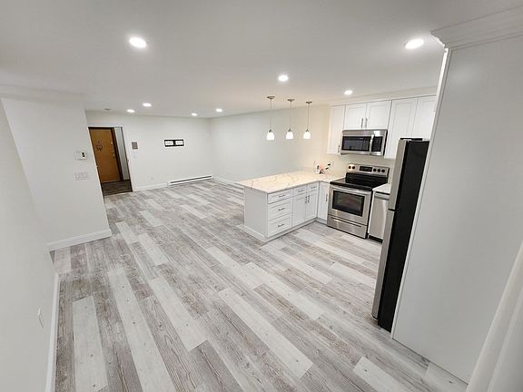 Well Maintained Laundry Room - Newer Machines, Designated Off Street Parking + Visitor Parking, Fully Remodeled, Newly Tiled Bathroom - Granite Vanity Top, Smooth Finish Walls & Ceilings, Newly Painted, Recessed Lighting Throughout, Newly Installed Luxury Plank Flooring, New Kitchen - New Cabinets with Crown Moldings - Refrigerator Casing - Calcatta Quartz Countertops -Peninsula Island Dressed With Pending Lighting, Stainless Steel Appliances, New 5.25" Pine Alexandria Baseboard Moldings, New Electric Baseboard Heaters (4 Zones), Plenty Closet Space Throughout, Below City Average Condo Fee ($245/mo), Condo Fee Includes Water, Trash, Property Maintenance, Snow & Lawn Maintenance.