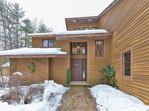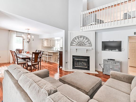 All Showings will be virtual, ask us how!! This stunning contemporary home located in Saratoga Schools is looking for its new owners! This home is set back off of the road and sits on 2 acres of land providing ultimate privacy. The incredible custom back yard features a large deck with a custom stone fireplace, built in grill and large in-ground pool (brand new lining!) is the perfect entertaining space! The open floor plan throughout the first floor combined with soaring ceilings, fresh paint throughout and large brick fireplace gives a clean, yet spacious feel.The view of the backyard from the sun room is incredible!! Features 1st Floor Master Suite & 2nd floor features a large seating area which opens up to the 3 bedrooms.