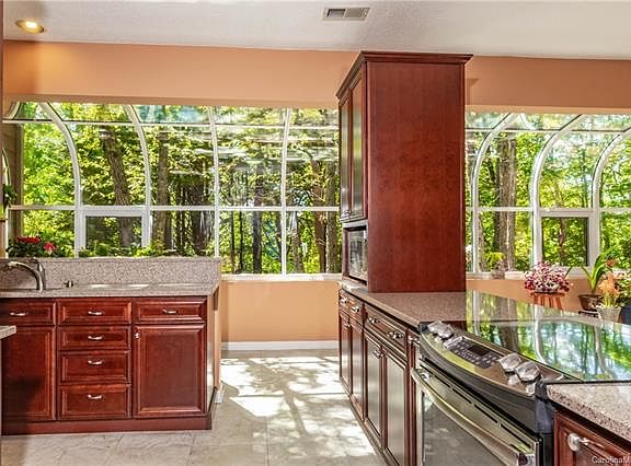 Tucked away close to the clubhouse on a cul-de-sac, this home is a gardener's delight w/raised beds & so much more. There are windows upon windows bringing in lots of natural light along with 9.5 to 10 foot ceilings. The updated kitchen w/Quartz counter tops & dining area off the kitchen, have a wonderful glass solarium to watch nature at its best. The large main dining area & great room has a rock wood burning fireplace and vaulted ceilings.The screened deck is overlooking the raised gardens & opens to an open deck. It also has a wall of built-ins with a wet bar. The master suite, has a large walk-in closet and a very large updated master bathroom with a walk-in shower and His/Her sinks. The guest bath is adorn with a designer vessel sink and granite. The lower 4th bedroom is perfect for an office or hobby area. Not to mention the large garage workshop. Buyers new to Connestee Falls to pay UAfee of $8,000 at time of closing or within 30 days or $10,000 by 12/31 of the closing year.
