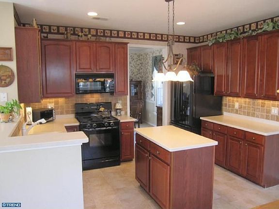 This beautiful Brick Front Hastings Model is warm & inviting. It is tastefully decorated with custom drapery, honeycomb shades & decorator lighting throughout. Two story entry foyer with hardwood flooring continues down the hallway and opens to a bright and sunny floor plan with 9 ft. ceilings. The light filled Liv Rm features triple windows & crown molding. The formal Din Rm has crown/chair rail molding. Updated Kitchen has 42~~~ cherry cabinets, Center Island & Bkfst Rm. Updated appliances: Bosch stove, DW (2008),LG French door Refrig.2009),tiled backsplash & brand new tile floor. Spac. Fam Rm has gas FP w/marble surround/wood mantle, rec. lighting & Hunter ceiling fan. Access the gorgeous paver patio with profess. landscaping & fenced yard. The Master Suite has cathedral ceiling, recessed light, huge W/I closet & cozy sitting room. The adjacent Master Bath has his/her sink/vanities and corner Jacuzzi tub plus new ceramic tile. The finished bsmt offers 2 huge rooms & storage space. Close to schools & shopping