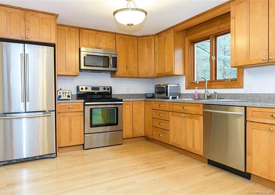This RANCH has 3 large bedrooms and 2½ bath rooms. This home is very open with beautiful hardwood floors and crown molding throughout the main level. The kitchen is furnished with stainless steel appliances, plenty of cabinetry, and lots of space for a kitchen table. The kitchen opens to the living room with a fireplace and a huge bay window. The dining room has sliders to the deck and above ground pool. The master bedroom is carpeted with a full bathroom. There are 2 other large bedrooms with hardwood floors. One includes built in shelves. There is a full bathroom off the hallway that has plenty of cabinet storage and tile floors. Also, additional 1,020 sq. ft. located in partial finished basement. This includes a dry bar, half bath with stand up shower. There is also a fully operation fireplace with a pellet stove insert. A cedar closet is located in the storage section of the basement along with the washer, dryer, newer furnace and hot water heater. ***Brand New Gutters INSTALLED*** ***Brand New Garage Opener INSTALLED*** ***Brand New Sliders to the Deck INSTALLED*** ***Brand New Pool Filter*** This home is conveniently located near Queen Street and I-84 for a convenient commute