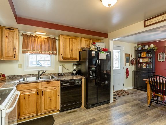 Welcome to your little hide away and farmette. This home is offered in a very well maintained state, move in ready, starting with replacement windows (5 years), new roof( 6 years), new flooring, new kitchen, and bathroom, and all new plumbing. featurning a water condtioner, new hot water heater, new heatpump and new well pump (2 years). Whole house programable fan too. All this in a fairy tale setting. TV on wall conveys.
