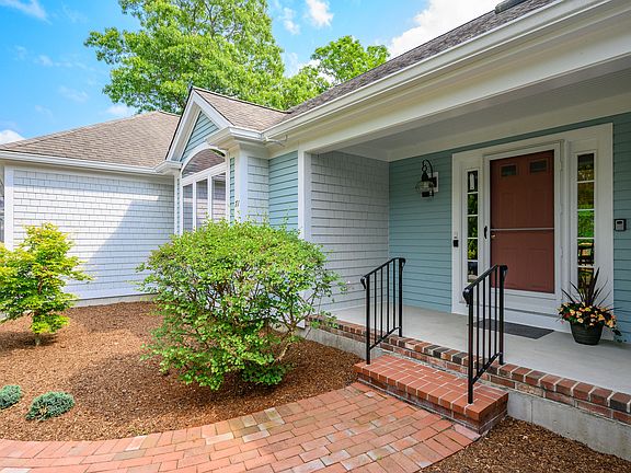 OPEN HOUSE CANCELLED! Stunning property in sought after Water's Edge! This sophisticated ranch is nestled in an established neighborhood, and offers a unique combination of modern features & traditional charm. As you step inside, you'll be greeted by an abundance of natural light, high ceilings, and an open floor plan that is perfect for both everyday living and entertaining. There is a spacious living room with fireplace which flows nicely to the dining area and well appointed kitchen. There is also a versatile room currently set up as a library with built-in bookshelves. The main bedroom suite is located in its own private wing, separate from the other bedrooms. The walkout lower level and unfinished attic allow for excellent expansion, and there is an extra-tall two car garage for vehicles and additional storage. Enjoy time outside on the deck or the patio overlooking the serene yard which backs up to association-owned land, further extending the sense of space and privacy. This is a lovely property, in a gem of a neighborhood, located across the street from Lovells Pond, and nearby to beaches, dining, golf, and all the attractions Cotuit has to offer.