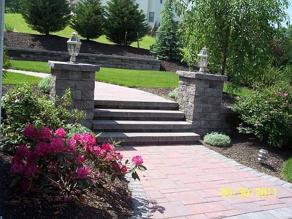 Like new colonial in desirable Hunters Ridge has been exceptionally well maintained. Incredible back yard with paver block patios, walls, and dramatic lighting. Easy to love, this home and setting Stunning back yard with specimen plantings provides color and blooms from Spring until Fall. High ceilings in basement perfect for finishing by the new owner. Garage floor and walls painted - perfect for the enthusiast!