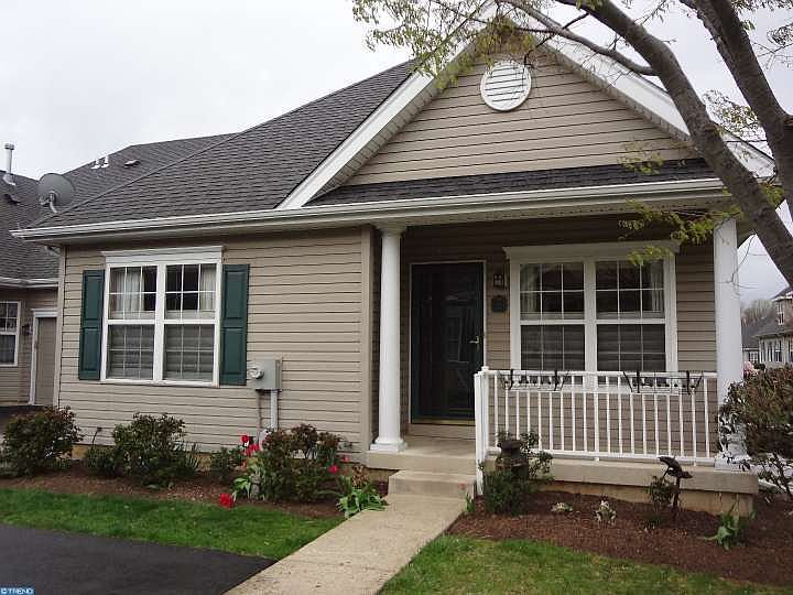 This two story home in the desirable 55+ community of Chancellor Glen offers low maintenance and is move-in ready! The living room with a soaring vaulted ceiling and skylights has hardwood flooring that flows throughout the formal dining room and into the kitchen area with granite countertops, a newer refrigerator, pantry and a conveniently located laundry closet. Also on this level is a powder room with a pedestal sink and a full linen closet. The master suite has a full bath featuring a Jacuzzi tub, stall shower and a walk-in closet. The second bedroom is located on the upper level with a full bath, walk-in closet, and a spacious room that can be used as an office or family room. Also included are ceiling fans in the living room, kitchen and bedrooms, a new dining room chandelier and custom window treatments. A finished basement with built in closets and storage room complete this lovely home in addition to a newly installed hot water heater and new carpeting in the bedrooms. Enjoy this lifestyle and relax on the covered front porch while the lawn maintenance is cared for! The Association also takes care of snow and trash removal and clubhouse amenities include an exercise room, indoor pool and meeting rooms. A 1-car garage leads access to the kitchen and the location is convenient to shopping, restaurants, PA Turnpike, I-95 and Route 1.