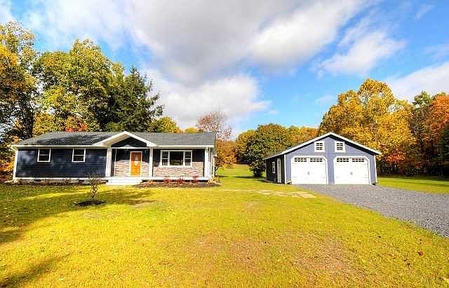 The perfect weekend home has to be in a great setting far from traffic & noise. This wonderful Rhinebeck one story is sited back on 6.37 open, rolling & beautiful acres where you see rolling meadows & you hear only the wind & birds when you step outside. Rhinebeck V with its exquisite restaurants & shops is 10 minutes away. This totally renovated home has 3 BRs, 2 baths, CA, a vaulted great room, and an amazing K with an 8 ft island. Everything here is BRAND NEW so home ownership will be worry free. There's a MBR suite, an open DR surrounded by glass, a 24 ft LR, wood & tile floors in every room, a hardiboard exterior, a covered porch, & a two car garage. This home is energy efficient & designed with flair. It's special. See floor plan on virtual tour.