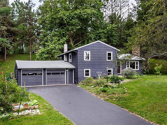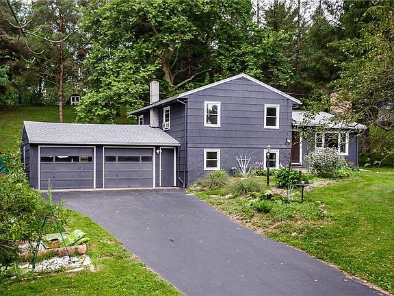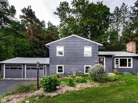 Enjoy walking into this spacious split-level featuring a brand new tear-off roof and new Triple Pane vinyl windows located on a quaint country road! Through the entry, find a cozy living rm with a large wood burning fireplace. Continue on to the formal dining room and upgraded kitchen complete with new flooring, cabinets, sink & Quartz countertops. Off the kitchen & down the stairs is the laundry area, Den/Office, & Family Room. Go upstairs to find the completely remodeled bathroom with beautiful tile shower. Outside enjoy over 1 acre of nature with wild raspberies and blackberies on the property as well as a shed and firepit out back. Minutes from shopping and Fellows Road Park. Home is on Fairport Electric.