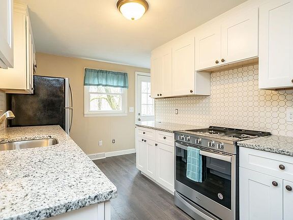 Welcome HOME!! Updated home waiting for it's new owner. One floor living at it's best. This home offers a large bright open living room with gleaming hardwood floors and a beautiful stone fireplace. Enjoy your family meals in the gorgeous updated kitchen with granite counter tops, stainless steel appliances and plenty of storage space. Kitchen french doors open up to a very large deck, perfect for entertaining or relaxing while enjoying the scenic view. All 3 bedrooms have gleaming hardwood floors and are conveniently located next to the updated bathroom. Plenty of elbow room for everyone. Rich flooring and warm colored tile finish the spaces.The one car garage is perfect to keep your car dry. Large basement has a finished bonus room but still has plenty of room for any extra storage space you may need. This amazing home features a brand new kitchen, updated bathroom, newer windows and a one car garage.This is the home you'll be in love with!!