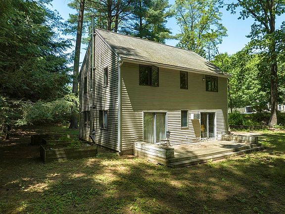 Wonderful neighborhood off of Ryan Rd. Location X3 at the end of a Cul de sac surrounded by nature and peace and quiet. Enjoy the wildlife, deer, fox, owls and other birds. Minutes to Florence and downtown Northampton. The house needs many upgrades but so worth the elbow grease. The first floor offers a large living room with woodstove and sliders to the deck and back yard. There is an open kitchen/dining area also with sliders and updated appliances. There is a utility room with laundry. And a half bath. The second floor has a main bedroom with a walk in closet. There are two additional bedrooms with double closets. All of these rooms have windows on two sides to maximize the light. There is also a full bath with tub/shower. The house is built on a slab, so no wet basement to worry about. Hone your renovation skills here. This home is a rare gem of possibilities.