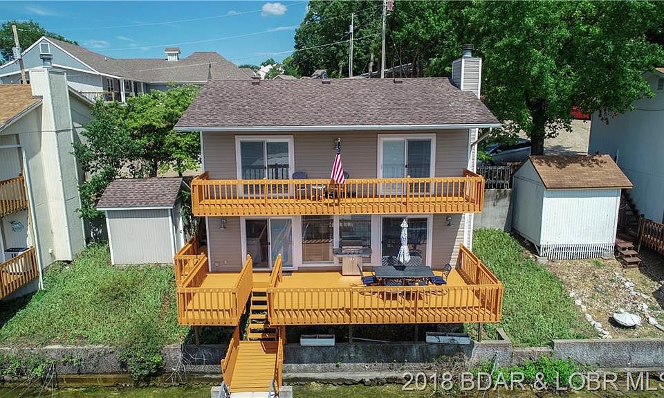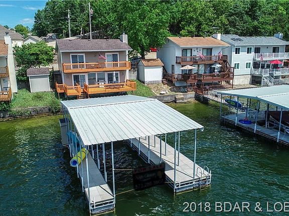 Breathtaking main channel view, lakefront home located in Lake Ozark. LOCATION, LOCATION, LOCATION! Conveniently close to shopping, golf courses, restaurants, amenities, and much more by either land or water. Many updates less than a year ago with wood flooring, newer tile floors, baths and vanities, light fixtures & much more. Amazing kitchen with newer stainless steel appliances and exquisite granite counter tops. Two lakeside bedrooms and a third are ready for you and your family to enjoy. A wonderful wood burning fireplace sets the ambiance for relaxing after a long day on the lake or at work. This maintenance free home is all electric and energy efficient. Too many updates in this amazing home to mention, come see the beauty yourself. Virtually no steps to the water - a deck over the water's edge. Also included is a dock with 12x32 boat slip, attached swim platform, ample parking with 2nd parcel & detached shed for storing water gear, fishing pools, ETC. This is a must see!!