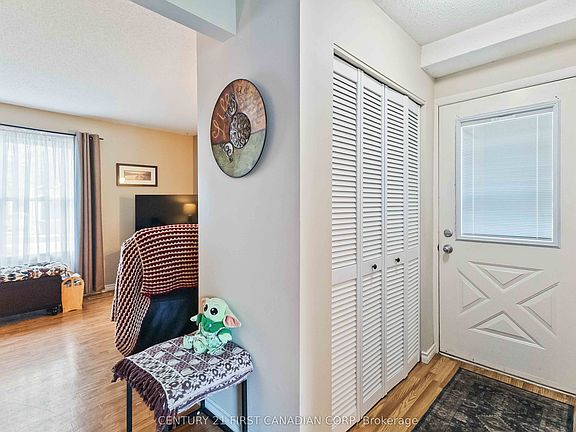 Well-maintained and updated semi-detached home in the sought-after Cleardale community. This move-in ready property offers a bright and spacious living room, a large master bedroom with double closets, and a finished lower level featuring a family-sized recreation room with plenty of storage. The eat-in kitchen opens through sliding doors to a brick patio and beautifully landscaped backyard, perfect for outdoor enjoyment. Recent updates include replacement windows and modern flooring throughout, furnace and air conditioning. Ideally located close to schools, shopping, and highway access, this home is a fantastic opportunity for first-time buyers or anyone seeking comfort and convenience.