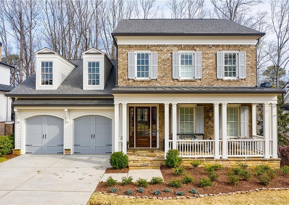 The charming curb appeal and fabulous outdoor areas on this enchanting home are idyllic for Historic Roswell. The quaint and inviting front porch opens to a stellar open floorplan with a luxurious master suite on the main level. The home's interior is modern, bright, beautifully- appointed, and incredibly spacious. Set in the highly coveted neighborhood of Goulding which offers supreme walkability to shops and restaurants, pocket parks, and a turn-key lifestyle. The gallery style front foyer is perfect for showcasing art and leads to a formal dining room with inviting side porch. Truly the heart of the home, a soaring two-story family room has a gorgeous wood burning stone fireplace and exposed wood beams. Entertaining is a delight in this amazing kitchen featuring quartz countertops, soft close white cabinetry, upgraded stainless appliances and a large center island where guests will gather. Walk out to deck with built-in grilling station and wrap around screened porch with peaceful tree-top views. Upper-level features 3 gracious secondary bedrooms with direct bath access. Finished terrace level offers full guest suite, media room, wine tasting room, and rec space. Backyard is two tired and fully fenced. Lower-level yard is ideal for additional green space. This location in the community was chosen by the homeowner for it's privacy, tree-lined expansive backyard, and proximity to the fun of Canton Street. No cars, no parking lots, no tear downs in sight. And HOA covers lawn maintenance! Time to enjoy the good things in life in the lovable hometown of Historic Roswell.