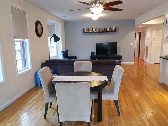 NO BROKER FEE + SUV covered Garage included. Upon entering this Spacious 2 bed/2 bath corner apartment you will immediately be flooded with natural light. Open & spacious floor plan, wonderful for entertaining. Recently updated kitchen features granite counter tops with over sized breakfast bar, perfect for food prep. Solid Hardwood floors and recessed lighting throughout add charm and character to this home. Master bedroom comfortably fit's a king size bed with plenty of room left for additional furniture, updated walk in closet & en-suite bath. Ample storage including a large pantry and wall to wall custom closets in 2nd spacious bedroom. Brand new washer/dryer in unit, elevator building, Central A/C and SUV covered garage parking with storage space and bike rack complete this package. 8 minutes walk to Hoboken Path train. Across the street from buses, shops & restaurants. Tenant pays for electricity and gas
