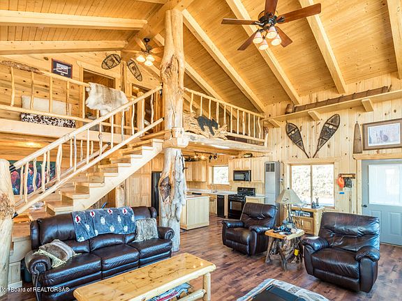Immaculate log cabin against National Forest in the Upper Green River Valley! Interior features include tongue and groove, cathedral ceilings, and exquisite character in natural log and pole finishes. Large picture windows in the great room reveal nearby peaks in the Wind River Range. Two loft bedrooms will work great for kids or guests, while the master bedroom is on the main level. The drive-in basement functions as an attached garage for your car or ORV (this is ORV paradise!) or could be converted to living space. It also has a separate, heated space for entertaining which opens to a screened porch area. The 1,600 sq ft shop is insulated and heated. This home is being offered furnished and the skid steer with blower in the garage is negotiable.
