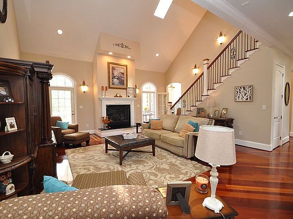 71 Hedrick Drive is located in Ru Lon Estates on a 2.4 acre lot. This beautiful open floor plan home has gleaming cherry hardwood floors, formal dining room, family room with gas log fireplace, gourmet kitchen with granite countertops, gas cooktop, double ovens, stainless appliances, large prep island and bright vaulted breakfast room, downstairs master bedroom with elegant master bath, downstairs guest bedroom with full bath and upstairs bedroom and home office. The basement is complete with a family room, game room, exercise room and 3 car garage. Enjoy afternoons on the covered porch overlooking fenced private back yard. MINUTES FROM KERR LAKE!