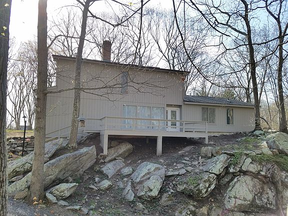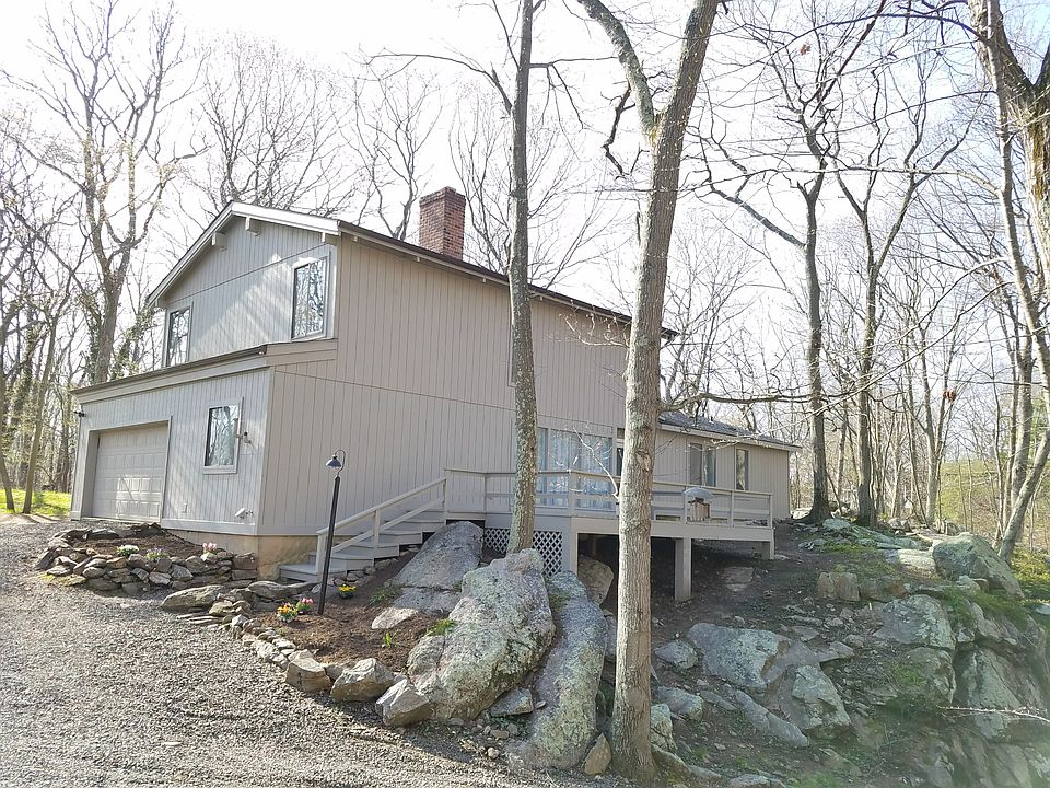 It's all about the location, just moments from the town green, yet away from everything in this beautiful secluded, private wooded location on a cul-de-sac. Updated Kitchen with granite counter tops, stainless steal appliances and all new cabinetry. The complete home has a fresh coat of paint. Bright open concept with lots of natal light streaming in through out. Contemporary stone floors enhance the beauty through out the main living area and into the first floor master bedroom suite with its over sized walk in closet and a wall of windows and sliders to the back yard. Two additional bedrooms with a bonus room on the upper level. This home is move in ready.