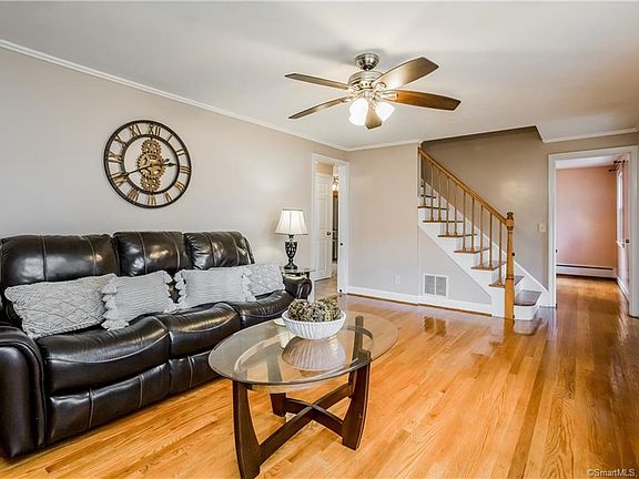 MOVE-IN READY CAPE - OVER $30,000 IN UPDATES! Conveniently located & beautifully maintained! Fall in love w/this sweet quintessential New England Cape nestled in a quiet neighborhood just minutes from freeways, shopping, & dining. CHECKS ALL THE BOXES! C/A, hardwood floors throughout, public water & sewer, natural gas, newer windows, 2-car garage, new storage shed, & more! Front door reveals bright living room w/cozy fireplace, large bay window, & charming built-ins. Formal dining room opens to both living room & to an updated kitchen w/newer SS appliances. Expansive 3-season sunporch extending off kitchen adds almost 300 additional SF of valuable living & entertaining space (not included in listing SF) w/direct access to back yard leading to detached 2-car garage. A spacious main level bedroom could also be imagined as a great home office. A full bathroom completes the first level of this idyllic family home. Upstairs leads to a generous master bedroom w/his & her closets and a lovely third bedroom. The upper level is serviced by another full bathroom. Crawl space eves, offer perfect space for seasonal items. The open & clean lower level offers over 800SF of unfinished area that could be improved for a family room, game/play room, home gym or use for endless storage currently equipped w/ shelving. So many wonderful upgrades! Move right in & enjoy the holidays in your new home. Showings begin Saturday, October 10th! This one will go fast...don't miss it! There is hardwood in great condition underneath carpeting in upstairs carpeted bedroom.