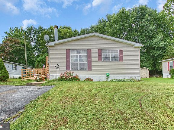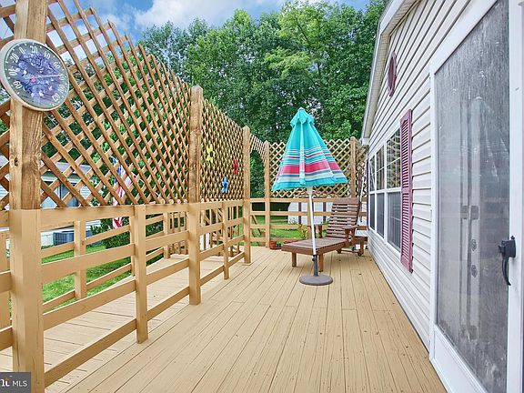 Spacious double wide in Smithville Estates! Cathedral ceilings, lots of natural light and over 2000 sq footage of living space. Was once used as the model home. Open kitchen and living room area with kitchen island, skylights and large windows. Formal dining room is very unique. Large deck with handicap ramp and 2 sheds for additional storage.