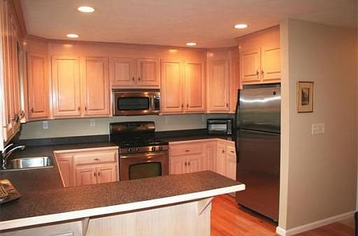 Location, location, location ! END UNIT in much sought after Prospect Heights, one level living condo, set with privacy and lovely wooded views. Enter into a spacious open floor plan with a fireplaced living room, dining area opening to the kitchen with custom cabinets and stainless steel appliances.The paints not even dry, just painted throughout in neutral colors, new carpeting, shining hardwood floors. Master bedroom with cathedral ceiling, palladium window, and master bath. Full basement with an abundance of storage space and 2 car garage. Easy access to major highways. A must see !