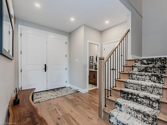 Welcome to 71 Hopewell Crossing Drive. This stunning 4-bedroom, 3.5-bath detached home offers luxuriousliving with premium upgrades throughout, located on one of the largest lots in the community. With a 63-footfrontage and no rear neighbors, privacy and space are guaranteed. Step inside to discover 6.5” white oakhardwood floors that radiate warmth and elegance. The bathrooms are designed with large format porcelaintiles and custom finishes, creating a sleek, modern aesthetic. At the heart of the home is the custom kitchen,featuring a striking 10-foot walnut live edge island and a 6-burner professional stove with griddle—perfect forgathering and entertaining. The open-concept design seamlessly connects the kitchen to the two-story familyroom, which flows effortlessly onto a spacious rear deck—ideal for outdoor living. Upstairs, you'll find fourgenerous bedrooms and a versatile loft area. The primary suite is a true retreat, offering a walk-in closet anda luxurious ensuite with heated floors, a freestanding tub, and an expansive walk-in shower designed forultimate relaxation. The finished basement expands your living space, with a large home gym and a custom-built bar, perfect for entertaining or working out at your convenience. Centrally located between Kitchener,Waterloo, Cambridge, and Guelph, this home offers easy access to the future Hopewell Crossing ElementarySchool and the proposed Breslau GO Train Station. With its blend of luxury, space, and unbeatable location,this property is truly one-of-a-kind. Don't miss the opportunity to make this exceptional home yours—contactus today for more information or to schedule a showing!